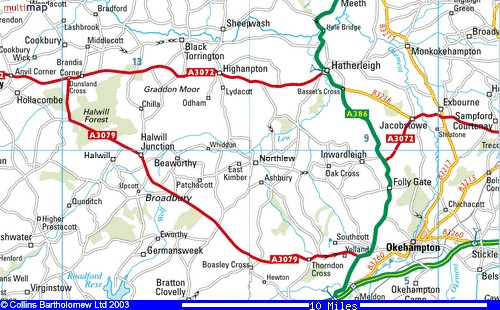 In 1850 Hatherleigh was described as a small ancient market town, pleasantly situated on the banks of a rivulet, about a mile S. of the river Torridge, 8 miles N.N.W. of Okehampton, 29 miles W.N.W. of Exeter, and 16 miles S.S.E. of Bideford. Its parish contains 1882 inhabitants, and 7041 acres of land, including a moor of 430 acres; and Stapleford, Fishley, Upcott, and other scattered farms. The town suffered severely from fire some years ago, but most of the houses were soon afterwards rebuilt, and the principal street widened and much improved.